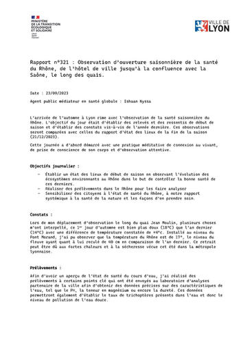 Titre : Rapports d’intervention de l’agent médiateur en santé globale